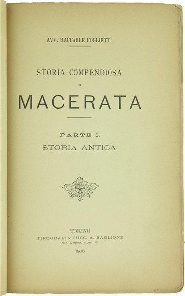 STORIA COMPENDIOSA DI MACERATA. Parte I: Storia Antica.