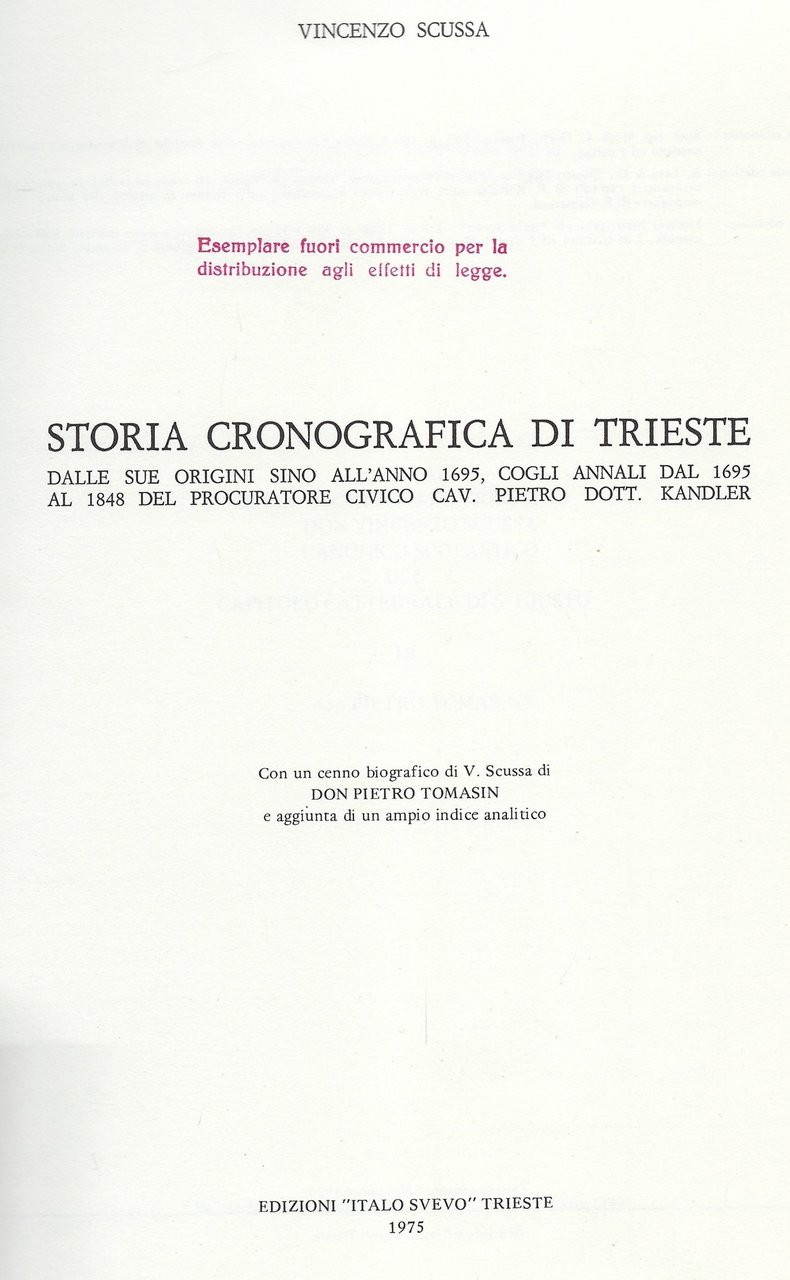 Storia cronografica di Trieste dalla sua origine all'anno 1695 cogli anali dal 1695 al 1848 del procuratore civico Pietro Kandler