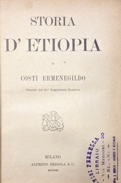 Rilegatura in percallina rosso scura con titolo oro al dorso, pp 297. Interessante studio sullÕEtiopia, completato dai nomi del calendario etiope e del significato di alcune parole amhariche.