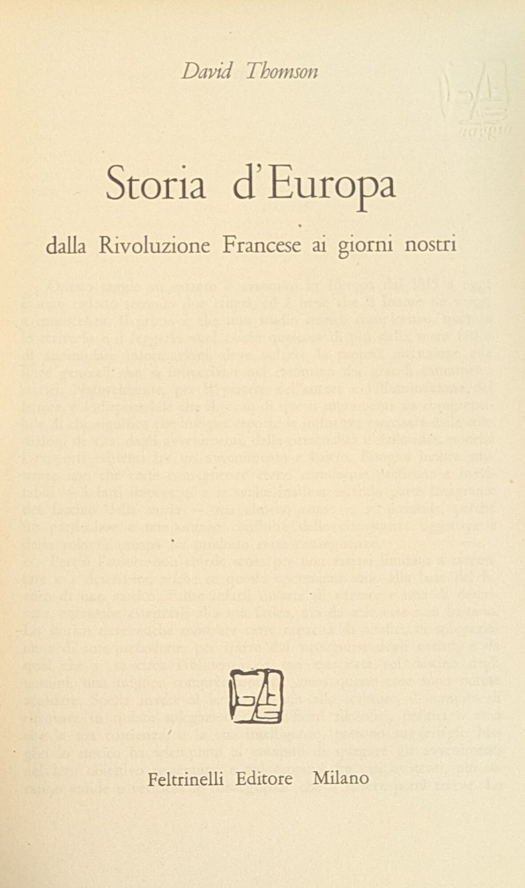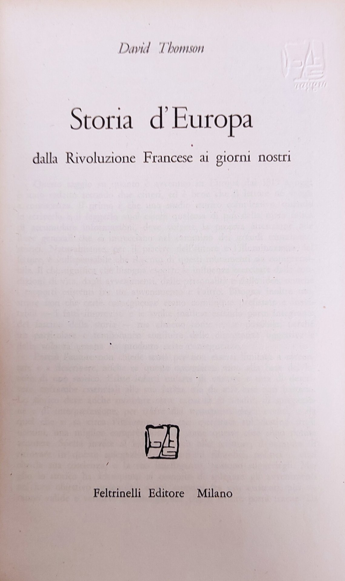 STORIA D'EUROPA. DALLA RIVOLUZIONE FRANCESE AI GIORNI NOSTRI