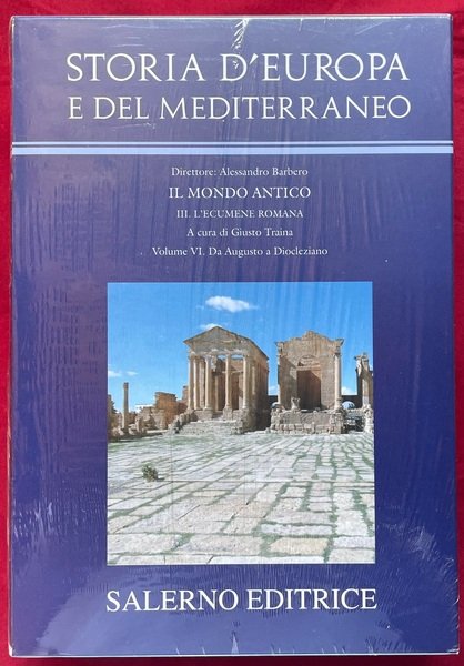 Storia d'Europa e del Mediterraneo, sez. III. L'ecumene romana, vol. VI. Da Augusto a Diocleziano. Formato 25 × 17,5 cm. Pagine 744, con 32 tavole fuori testo e 8 di cartine. Rilegato in piena tela con sovraccoperta a colori.