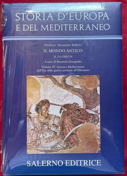 Storia d’Europa e del Mediterraneo, sez. II. La Grecia, vol. IV. Grecia e Mediterraneo dall’età delle guerre persiane all’Ellenismo. Formato 25 × 17,5 cm. Pagine 744, con 32 tavole fuori testo e 4 di cartine (alcune ripiegate). Rilegato in piena tela con sovraccoperta a colori.
