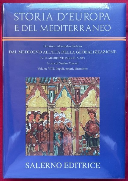 Storia d’Europa e del Mediterraneo, sez. IV. Il Medioevo (secoli V-XV), vol. VIII. Popoli, potere, dinamiche. Formato 25 × 17,5 cm. Pagine 812, con 32 tavole fuori testo e 4 di cartine (alcune ripiegate). Rilegato in piena tela con sovraccoperta a colori.