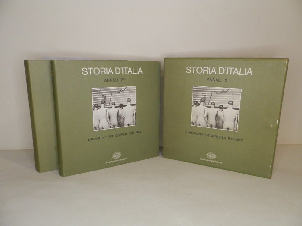 8°, 2 volumi in cofanetto di pp. XLIV; 308,e 198, con 676 fotografie fuori testo, rilegatura editoriale in tela, titolo al dorso, sovracoperta editoriale illustrata, cofanetto editoriale illustrato. Interessante storia d'Italia attraverso le immagini fotografiche dal 1845 al 1945. Segni del tempo minimali alle basi superiore del cofanetto e macchietta al dorso del primo volume, peraltro ben conservati.. *** TUTTI I NOSTRI LIBRI SONO VISIBILI PREVIO CONTATTO MAIL O TELEFONO NELLA NUOVA SEDE DI MILANO: LIBRERIA COSMOPOLIS, VIA JOMMELLI, 22. ***
