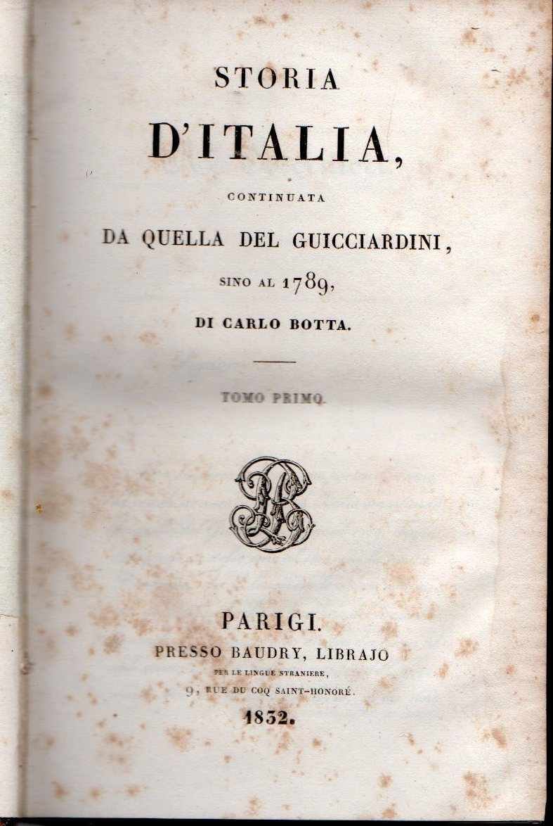 Storia d'Italia continuata da quella del Guicciardini sino al 1789, di Carlo Botta (Tomi I, II, III, IV, V, VI, VII, VIII, IX e X - opera completa)