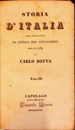 Storia d’Italia continuata da quella del Guicciardini sino al 1789 di Carlo Botta. Tomo III.