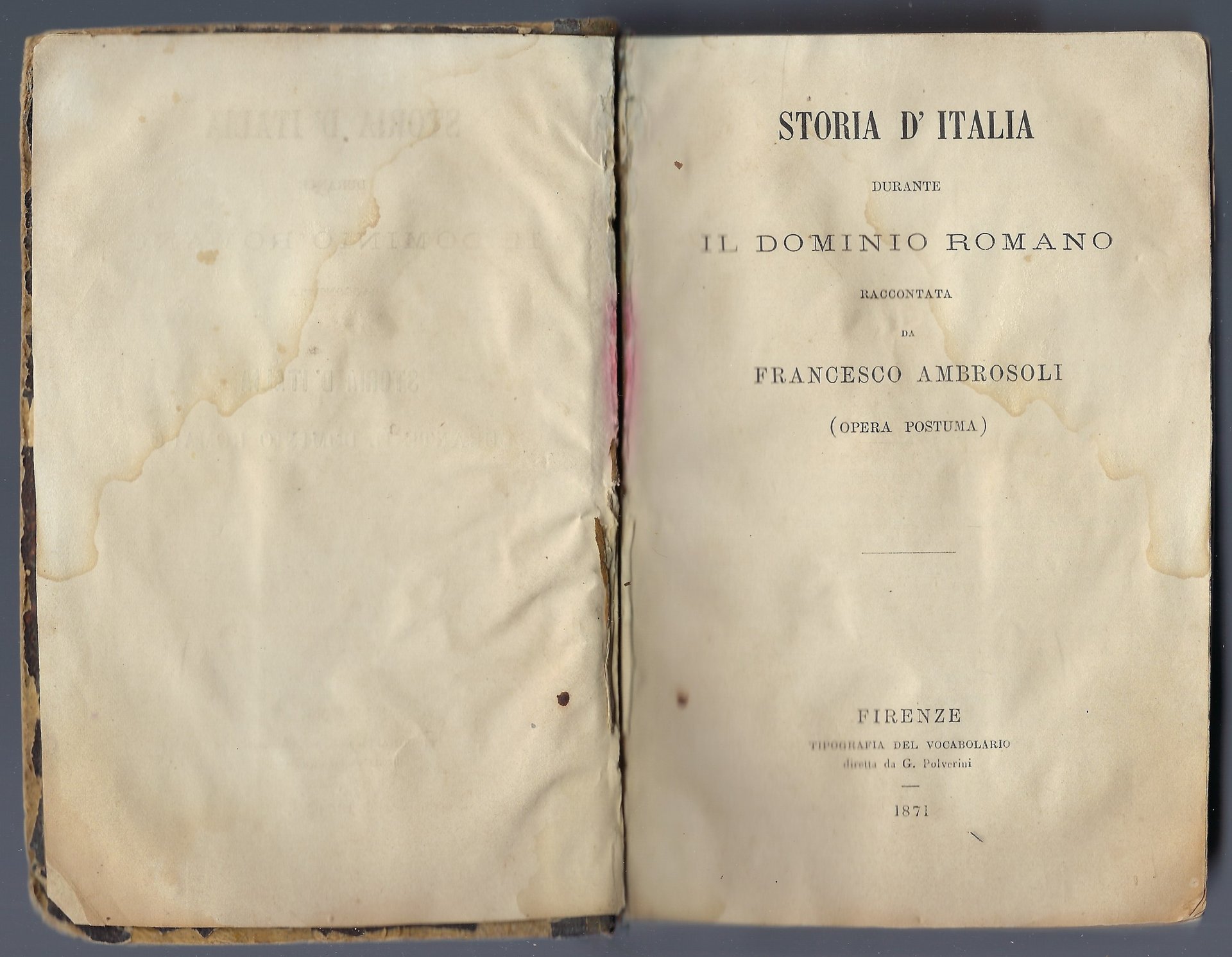 Cartonato editoriale alquanto consunto con titoli e fregi in oro al dorso.