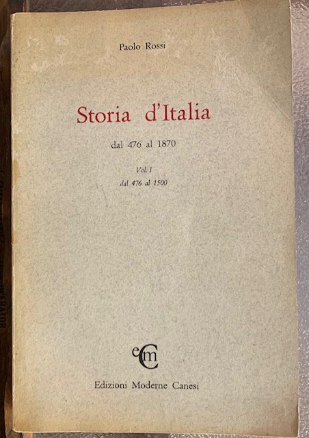 cart. edit. (presenti alcune sottolineature a penna e matita). (il periodo storico coperto dal saggio va dal 476 al 1870. DISPONIBILE SOLO IL VOLUME I°). (Manca sopracoperta).