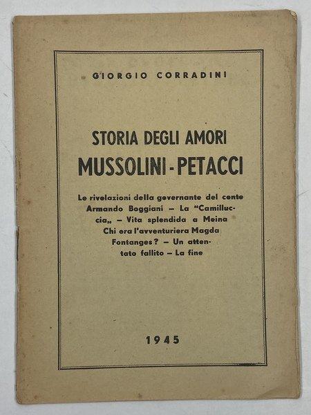 STORIA DEGLI AMORI MUSSOLINI-PETACCI. Le rivelazioni della governante del conte Armando Boggiani - La Camilluccia - Vita splendida a Meina - Chi era l’avventuriera Magda Fontanges? - Un attentato fallito - La fine.