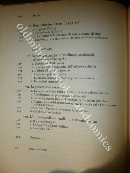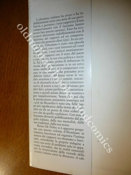 STORIA DEGLI EBREI ITALIANI SOTTO IL FASCISMO RENZO DE FELICE 1972 II^ Ed.