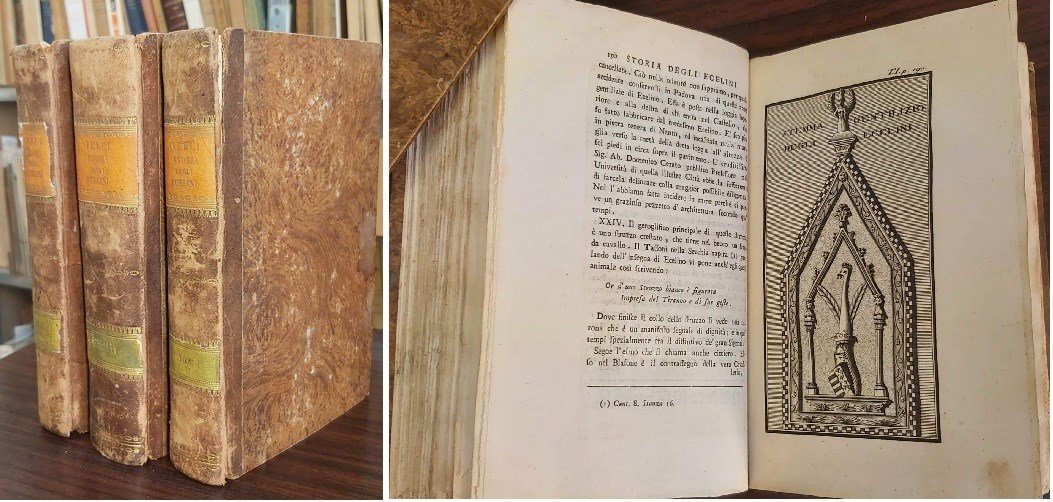 3 voll. in-8, pp. (6), XLVI, 408; 416; XXIV, 617, (2), bella leg. m. pelle coeva con doppi tass. e tit. oro al d. Front. con testo incorniciato da bel fregio xilogr. Con una vignetta in rame raff. lo stemma degli Ezzelini in testa alla dedicat. al Conte Carlo di Firmian. Il terzo vol. che contiene i documenti, è preceduto da un occhietto che cita "Codice Diplomatico Eceliniano". Lozzi 5610. Platneriana p. 195. La più celebre opera dello storico bassanese (1739-1795) in ediz. orig. Leggermente allentata la cerniera ant. del primo vol., minima gora marginale nelle ultime 100 pp., ma belliss. esempl. su c. forte della più rara e ricercata edizione del Verci. [149]