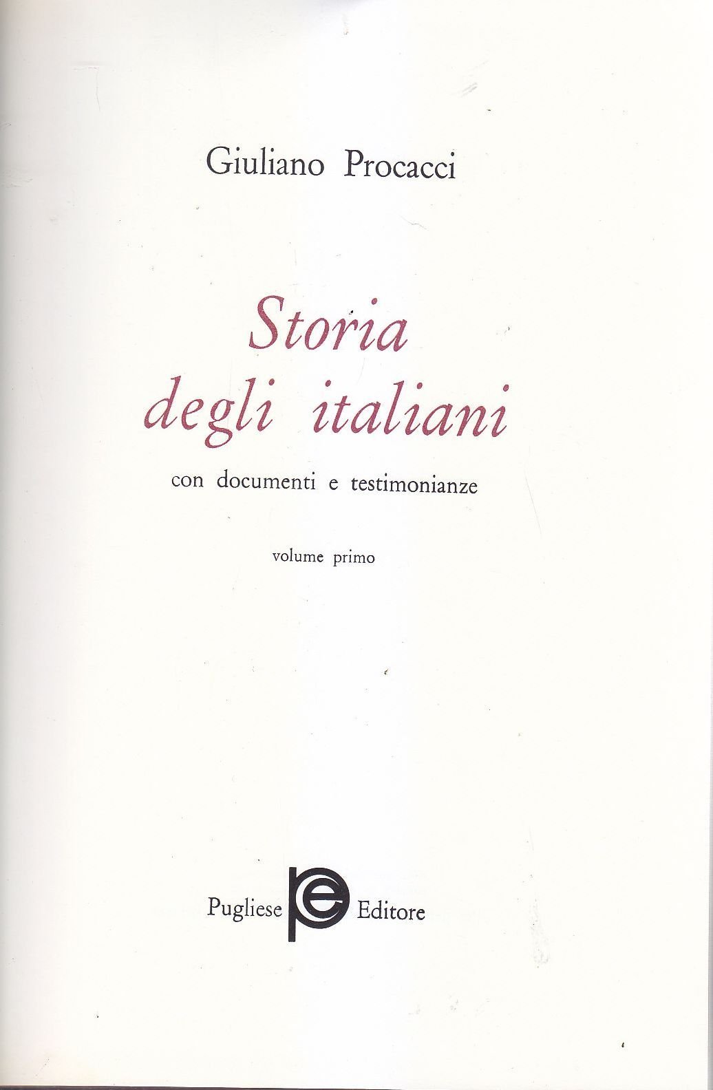 STORIA DEGLI ITALIANI di Giuliano Procacci 2 Volumi in cofanetto 1971 Pugliese