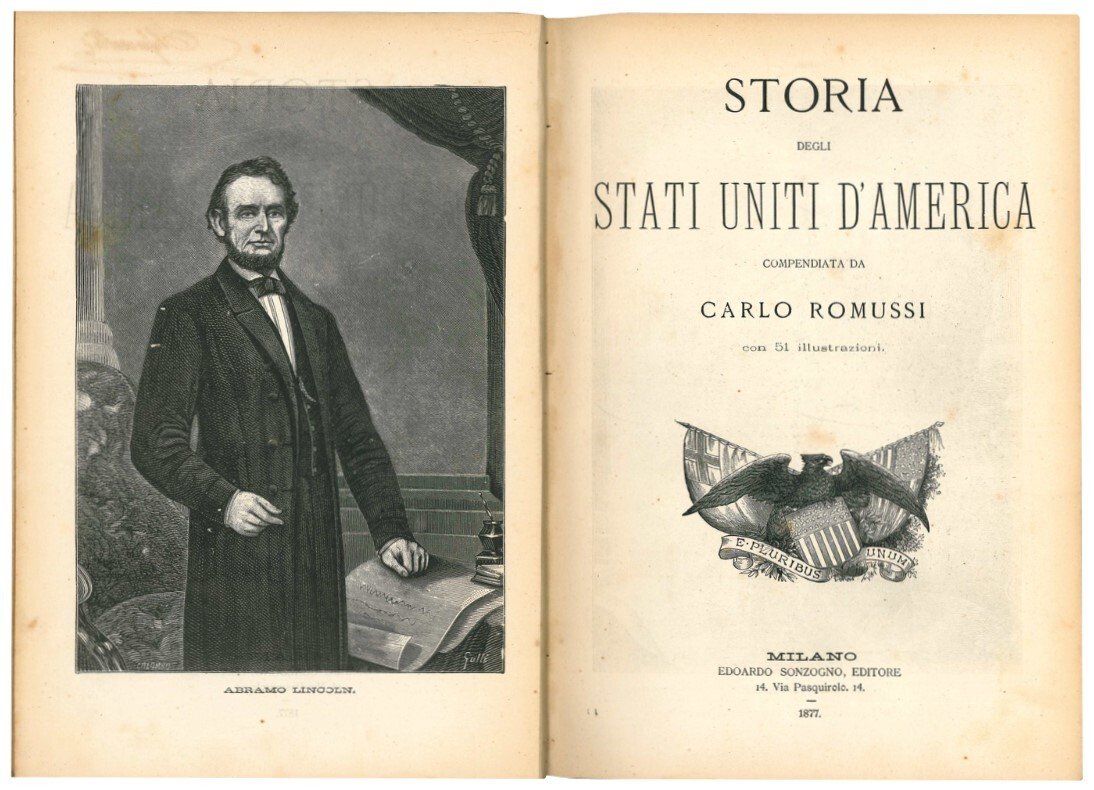 Mm. 259x180. Pp. 204, [1] tav. di ritratto di Abramo Lincoln in antiporta. Con 51 illustrazioni xilografiche, anche a piena pagina. C. lievemente ed uniformemente brunita, firma di possesso alla c. di sguardia r. Rilegato in mezza pelle editoriale. Piatti lievemente macchiati, presenza di etichetta al dorso. Prima edizione.