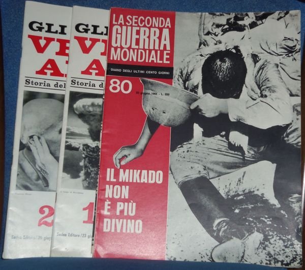 [Storia](cm.31) 3 Fascicoli, per complessive pagine 96. Con la "Storia del Mondo 45-65" narrata attraverso diverse immagini e fotografie originali, si tratta dei primi due fascicoli usciti nel Giugno 1965. La casa Editrice distribuiva settimanalmente queste dispense, da rilegare con apposita copertina venduta separatamente alla fine della raccolta. Questa opera sulla storia dal 1945 in poi, Ë il seguito della precedente opera "La seconda Guerra Mondiale, diario degli ultimi 100 giorni" pubblicata e distribuita a fascicoli sempre nel 1965. Esemplati in buone condizioni generali. [n25]