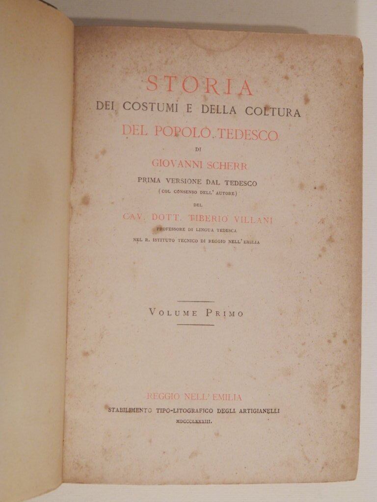 16°, cm 19, 3 volumi di pp. XVII, 341; pp. 218; pp. 271. Legature coeve in mezza tela blu con titoli in oro al dorso e piatti in carta marmorizzata. Bruniture sparse all'interno dei tre volumi, mancante di frontespizio il terzo volume, nel complesso buona conservazione. Prima versione dal tedesco (col consenso dell'autore) del cav. dott. Tiberio Villani. I tre volumi contengono: Introduzione, Prefazione, Tempi primitivi e Medioevo (vol. 1) - Il tempo della riforma (vol. 2) - L'età moderna (vol. 3). . *** TUTTI I NOSTRI LIBRI SONO VISIBILI PREVIO CONTATTO MAIL O TELEFONO NELLA NUOVA SEDE DI MILANO: LIBRERIA COSMOPOLIS, VIA JOMMELLI, 22. ***