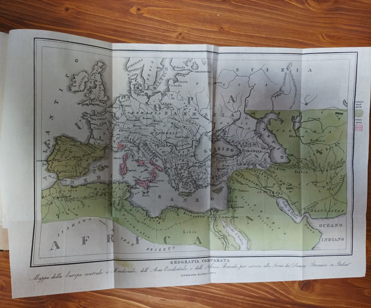 Volume cartonato rigido di pagine 500 con alcune incisioni conservate all'inteno e quattro cartine a colori ripiegate in chiusura. Rilegatura coeva un mezza pelle con titolo e fregi oro al dorso. Opera in buone condizioni. Spedizione in 24 ore dalla conferma dell'ordine.