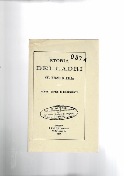 Storia dei ladri nel Regno d'Italia, fatti, cifre e opere. Risrampa anastatica dell'edizione di Torino, Bosi del 1869.