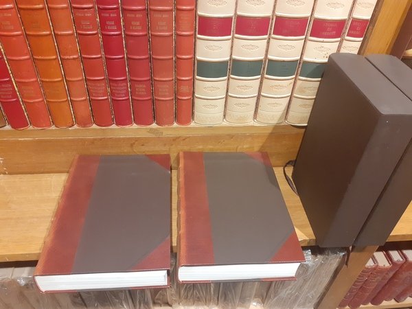 Opera in 2 Volumi. In mezza pelle con legatura in tela, fregi e titolo in oro e 5 nervi alla costa; entrambi i volumi nel proprio cofanetto rigido.