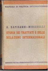 (Manuali di politica int.). Contiene: Storia dei trattati come disciplina autonoma; Scopo e piano; I trattati internaz. nel mondo antico; Nel Medio Evo e all'inizio dell'epoca moderna; I principali trattati costitutivi del sistema politico europeo; I trattati internaz. comprovanti la trasformazione del sistema politico europeo in sistema pliticio mondiale; I trattati particolari e generali che incidono nel vasto ordine degli interessi comuni, materiali e morali degli stati (donde si desume il fenomeno cintemporaneo dell'effettività d'una vita internazionale collettiva); I trattati concernenti i tentativi di un'organizzazione internazionale della pace: risultati e conclusioni.