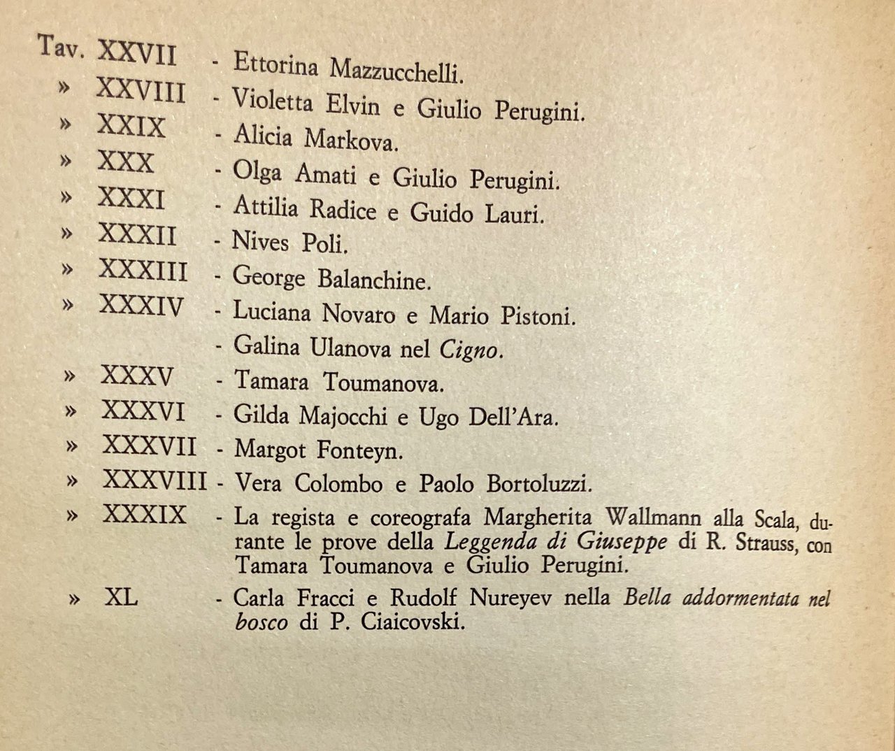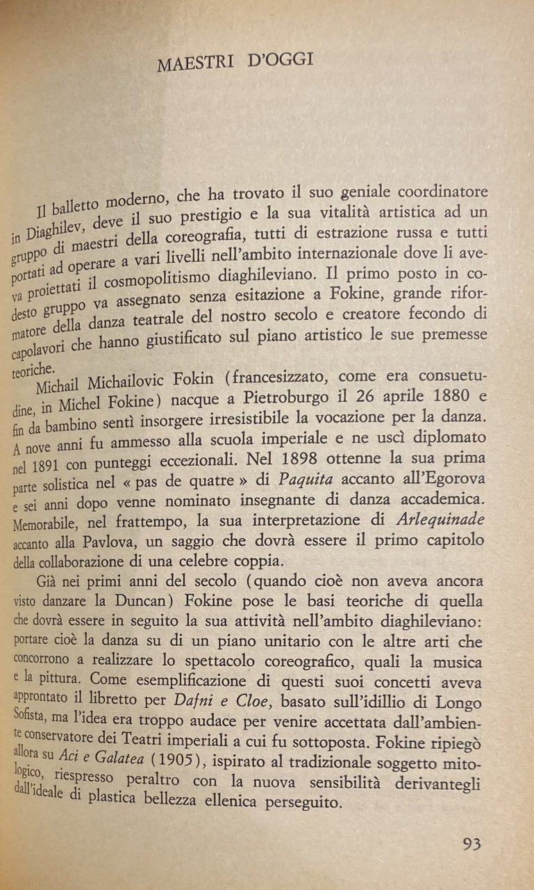 Soggetti: Danza classica, Balletto, Storia, Ballo, Ballettistica, Ballerini famosi, Biografie, Coreografia, Teatro russo, Italia, Russia, Francia, Europa, Austria, Germania, Letteratura, Scena, Ballare, Libri rari Vintage fuori catalogo, Bibliografia, Riferimento, Spettacolo, Libri illustrati, Fotografie d'epoca, Balletto, Coreodramma, Romanticismo, Ballerine, Allenamento, Maestri, Ettorina Mazzucchelli, Alicia Markova, Violetta Elvin, Giulio Perugini, Attilia Radice, Guido Lauri, George Balanchine, Luciana Novaro, Mario Pistoni, Sergej Pavlovic Djagilev, Galina Ulanova, Cigno, Tamara Toumanova, Nives Poli, Gilda Maiocchi, Giulio Perugini, Olga Amati, Ugo Dell'Ara, Margot Fonteyn, Vera Colombo, Paolo Bortoluzzi, Margherita Wallmann, Rudolf Nureyev, Rivolta antiaccademica, Collezionismo, Giuliana Corsini, Igor Stravinski, Musica, Danza di corte, Trattato, Guglielmo Ebreo, Passo, Passi, Nuove Inventioni di balli, Cesare Negri il Trombone, Barbara Campanini, Barbarina, Jean-Georges Noverre, Settecento, Ottocento, Novecento, Rinascimento, Rozier, Amalia Brugnoli, La Fata e il Cavaliere, Gaetano Vestris, Maria De Caro Narducci, Salvatore, Maria Medina Viganò, la Scala, Antonia Pallerini, Arabesque à la lyre, Traité élémentaire, Carlo Blasis, Fanny Elssler, Lucien Petipa, Lucille Grahn, Fanny Cerrito, Carlotta Grisi, Lucille Grahn, Fanny Cerrito, Pas de quatre, Jules Perrot, Auguste de Bournonville, Sofia Fuoco, Claudina Cucchi, Carolina Rosati, Pablo Picasso, Serge de Diaghilev, Impresari, Salisbury, Alexandre Benois, Michael Fokine, Ida Rubinstein, Cia Fornaroli, Carla Fracci, Bella addormentata nel bosco, Opere, Drammi, Leggenda di Giuseppe, San Pietroburgo, Scuole, Corti rinascimentali, Aristocrazia, Balletti russi, Ballets russes, Compagnie, Parigi, Umanesimo, Domenico da Piacenza, Estetica, Allievi, Ballet de cour, Corte, Scenografia, Ferdinando Bibiena, Vienna, Giacomo Torelli, Maschere, Costumi, Marie Camargo, Marie Sallé, Riforma, Emancipazione, Action, Jean-Georges Noverre, Gasparo Angiolini, Opéra, Romanticismo, Sylphide, Maria Taglioni, Filippo Taglioni, Théophile Gautier, Libretti, En travesti, Coppélia, Marius Petipa, Balletti Imperiali, Lo schiaccianoci, Ciaikovskij, Bayadère, Mariinskij, Jean-Baptiste Landé, Caterina la Grande, Arthur Saint-Léon, Marius Petipa, Bol'šoj, Mosca, Anna Pavlova, Vaslav Nijinsky, Passo d'addio, Mezze Punte, Origini italiane, Mattaccino, Moresca, Cornazzano, trionfi, Movimento, Coordinamento, Tempo, Regole, Mascarade, Masquerade, Firenze, Toscana, Medici, Americano, Anthony Tudor, Verdi, Sadler's Wells, Rossini, Pratesi, Preobrazenskaja, Prokofief, Rimski-Korsakov, Mario Pistoni, O'Neill, Argentina, Mordkin, Nijinsky, Nijinska, New York, Aurel Milloss, Leonide Massine, Mozart, Giambattista Lulli, Serge Lifar, Karsavina, Gene Kelly, Von Laban, Elia Kazan, Pierina Legnani, Fanny Elssler, Isadora Duncan, Benedetto Croce, Dolin, Cuevas, Enrico Cecchetti, Berlioz, Benois, Carlo Blasis, Adolph Bolm, Braque, Brecht, Cerrito, Concert, Adorno, Fred Astaire, Cubano, Ménestrier, Haskell, Beaumont, Carrieri, Levison, Gatti, Lynham, Michaut, Reyna, Vaillat, Otto Friedrich Regner, Giselle, Tintori, Ensembles, Erika Hanka, Staatsoper, Stile, Strauss, Tecnica, Tournée, Training, Troupe, Victor Gsovsky, Werner Egk, Maître, Marcel Luipart, Max Röthlisberger, Jerome Robbins, Kurt Jooss, L'Oiseau de feu, Lac des cygnes, Frederick Ashton, Repertorio, Interpreti, Debutto, Capolavori, Loie Fuller, Excelsior, Ettore Giannini, Carosello napoletano, Café Chantant, Matisse, De Chirico, Mirò, Cartellone, Moderna, Libera, Dafni, Cloe, Galatea, Depero, Da collezione, Prokof'ev, Ballet, History, Dance, Famous dancers, Biographies, Choreography, Theater, Italy, Russia, France, Europe, Germany, Literature, Scene, Dancing, Rare out of print books, Bibliography, Reference, Show, Illustrated books, Vintage photographs, Choreodrama, Romanticism, Dancers, Training, Masters, Swan, Anti-academic revolt, Collecting, Treatise, Steps, Eighteenth, Nineteenth, Twentieth century, Renaissance, The Fairy and the Knight, Sleeping Beauty, Works, Dramas, St. Petersburg, Schools, Renaissance courts, Aristocracy, Russian ballets, Companies, Paris, Humanism, Aesthetics, Pupils, Scenography, Masks, Costumes, Reform, Emancipation, Romanticism, Librettos, Imperials, The Nutcracker, Catherine the Great, Moscow, Farewell step, Half Pointe, Italian origins, Triumphs, Movement, Coordination, Time, Rules, Florence, Tuscany, Style, Technique, Repertoire, Interpreters, Debut, Masterpieces, Collectibles, Entrepreneurs