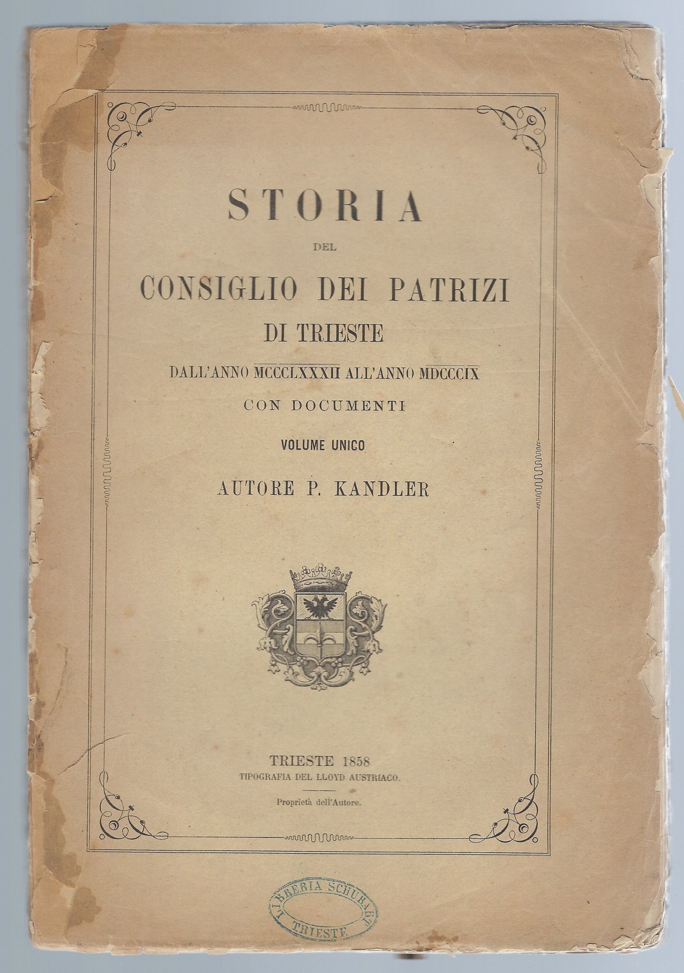 Storia del consiglio dei patrizi di Trieste dall'anno MCCCLXXXII all'anno MDCCCIX con documenti - Volume unico