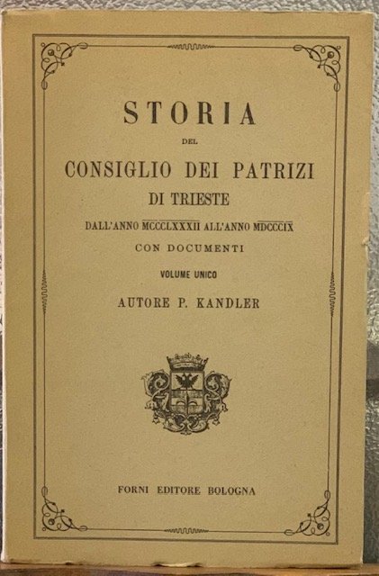 STORIA DEL CONSIGLIO DEI PATRIZI DI TRIESTE, dall' anno MCCCLXXXII all'anno MDCCCIX con documenti.