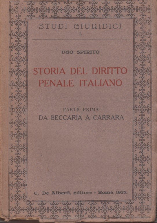 Storia del diritto penale italiano. Parte prima. Da Beccaria e Carrara
