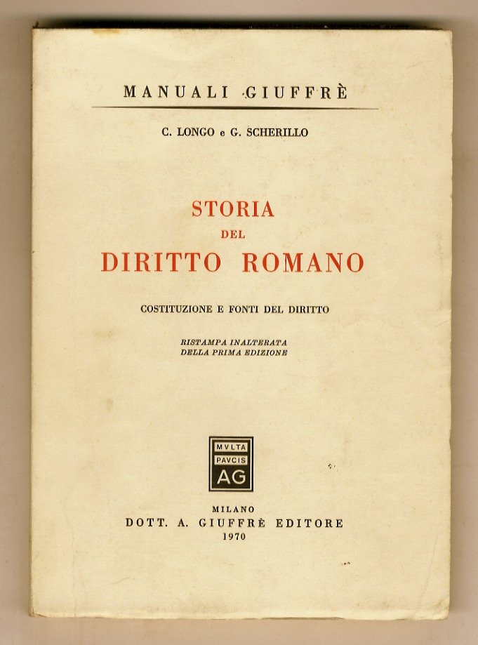 Milano, Giuffrè, 1973, in-8, brossura editoriale, pp. VIII, 302. Condizioni molto buone.