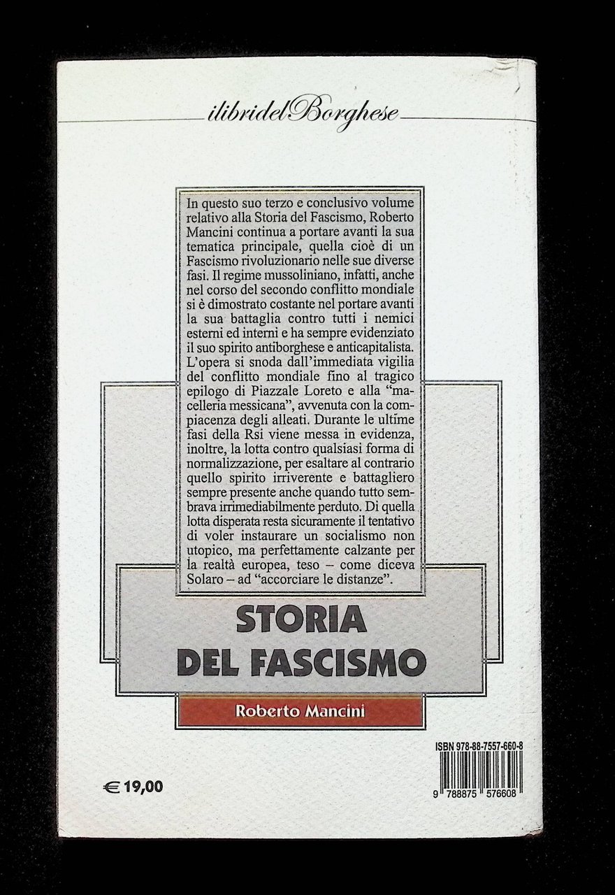 Storia Del Fascismo 3 Libro Roberto Mancini Libri del Borghese 9788875576608