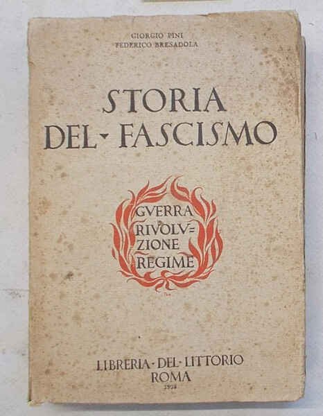 In 16° (cm. 19 x 13); pagg. 515; con tavole fotograf. f.t. (una delle quali ripiegata); leggera cartonatura e carta un po' scurita, ma molto buono. VG-. ** Prima edizione. ". il nostro libro tende a sostenere il trapasso definitivo dei valori comuni del Fascismo dalla cronaca alla storia".