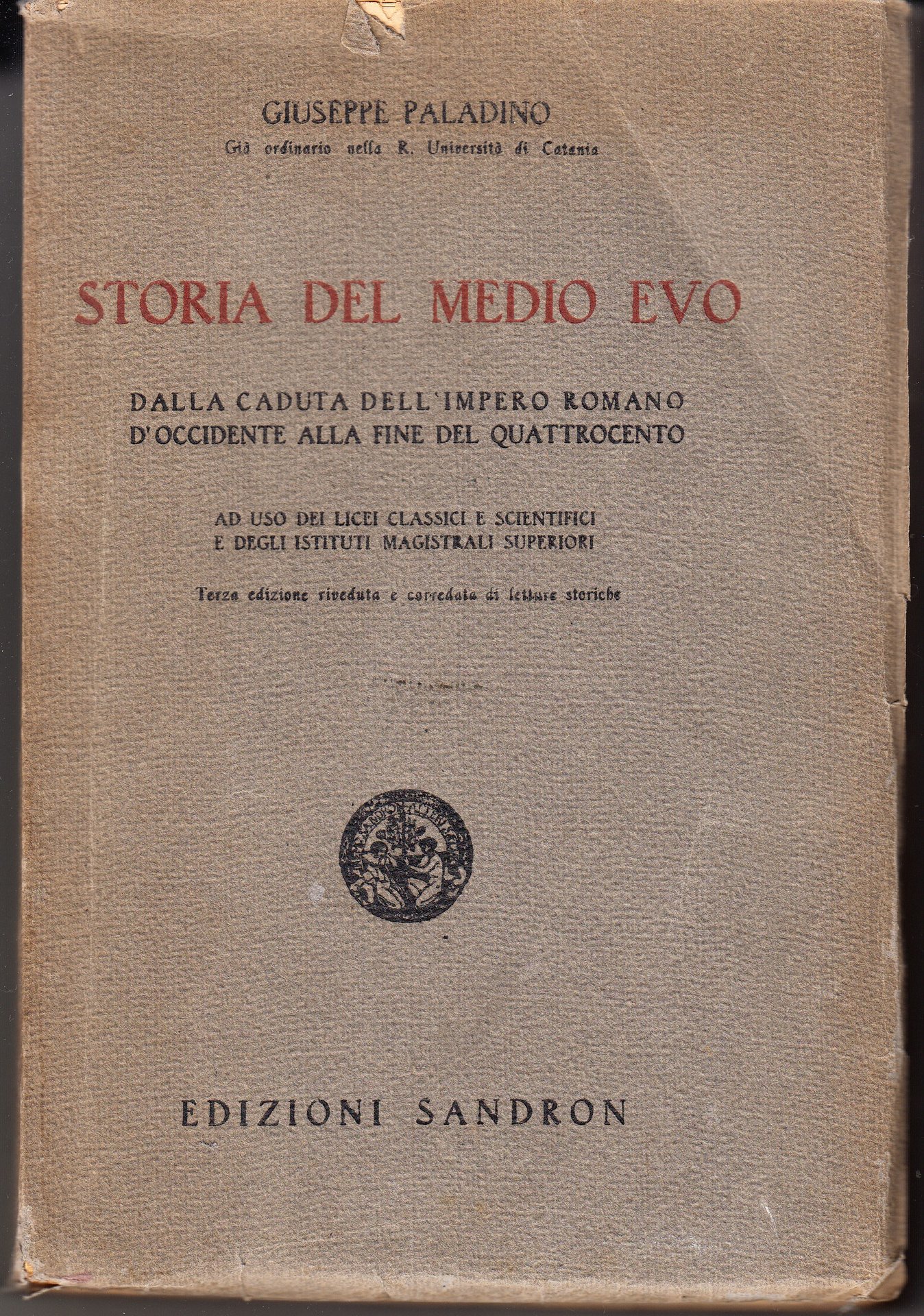 Storia del Medio Evo. Dalla caduta dell'impero romano d'Occidente alla fine del Quattrocento. Ad uso dei licei classici e scientifici e degli Istituti magistrali superiori. Terza edizione riveduta e corredata di letture storiche