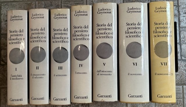 7 volumi in-4° , circa 700 pp a volume, legatura in tela editoriale con sovraccop. Prima edizione. L'opera è cosi suddivisa Vol. I - (L'antichità - Il Medioevo) pagine 685. Vol. II - (Il cinquecento - Il seicento) pagine 705. Vol. III - (Il Settecento) pagine 719. Vol. IV - (L'ottocento) pagine 818. Vol V - (Dall'ottocento al novecento) pagine 998. Vol. VI - (Il novecento) pagine 1183. Ogni volume contiene numerose illustrazioni in nero e tavole a colori.