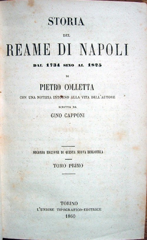 Storia del Reame di Napoli dal 1734 sino al 1825. Con una notizia intorno alla vita dell'autore scritta da Gino Capponi