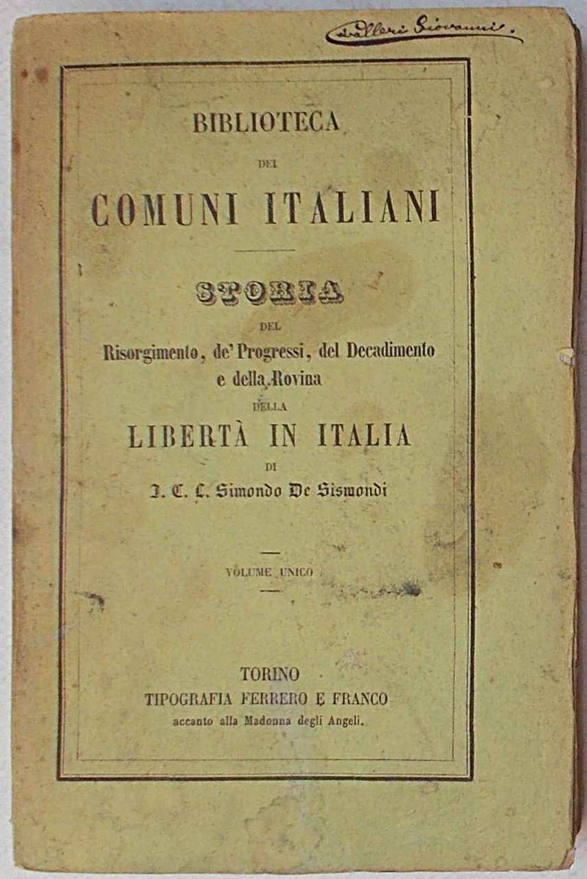 Storia del risorgimento, de' progressi, del decadimento e della rovina della Libertà in Italia.