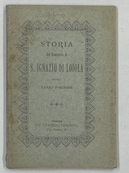 Brossura editoriale a stampa, cm10x15, pp 96, all’antiporta tavola con apparizione del Santo e piccola veduta del Santuario. Storia e fondazione del santuario, prime apparizioni e grazie di Sant’Ignazio presso Tortore di Lanzo (Torino), e descrizione dei miracoli e guarigioni per intercessione del Santo, fra i quali segnaliamo “Fanciullo rapito e liberato da un lupo”.
