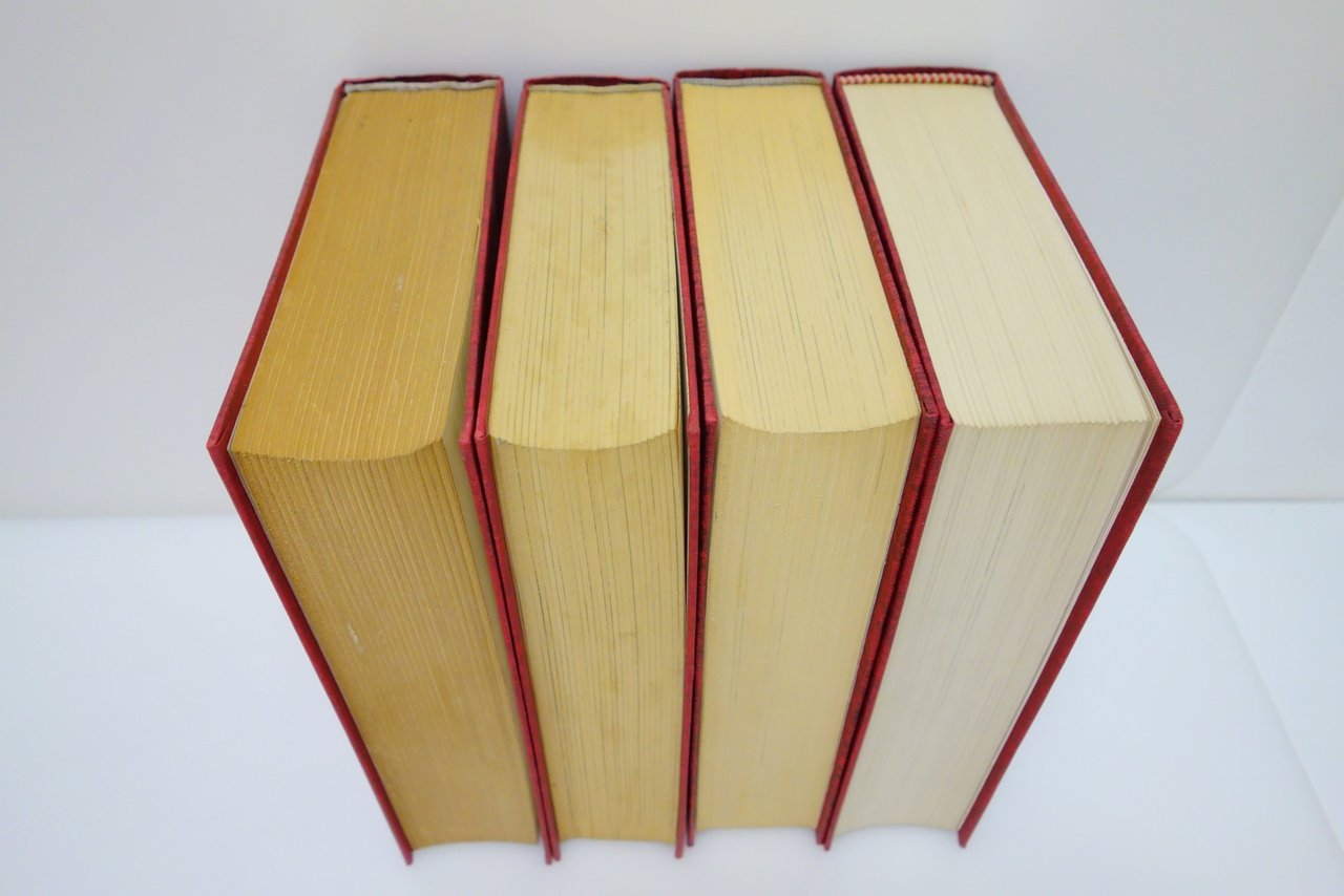In complessive ottime condizioni. I volumi sono in genarle ottimamente conservati, si segnalano solo usuali tracce d'uso e di ingiallimento alle sovrac. in corrispondenza di margini e dorso. Il vol. 2 presenta un maggiore ingiallimento al dorso della sovrac. rispetto agli altri volumi. Tutti i volumi presentano la firma dell'ex proprietario al frontespizio. Per ulteriori dettagli vedi foto