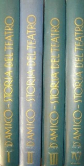Rizzoli & C. Editori, Milano – Roma, 1939 – 1940 (prima edizione). Quattro volumi in 4to, pp. 421; 535; 479; 509 (inclusive di Indici e dell'elenco delle Tavole riprodotte), numer. ill fot. in b/n n.t. e tavv. a colori f.t., (la prima in antiporta a ciascun volume), leg. in percallina liscia di color azzurro con titoli in oro al piatto e al dorso, scritti con tipica grafia stampatella del primo Novecento. Rispettivamente i volumi contengono: Vol. I, parte prima: "Grecia e Roma" - parte seconda: "Medioevo"; Vol. II, parte terza: "L'Europa dal Rinascimento al Romanticismo"; Vol. III, parte quarta: "L'Ottocento"; Vol. IV, parte quinta: "Il Teatro Contemporaneo" - Appendice: "Teatri Orientali". Opera completa dei quattro volumi. Dedicata alla moglie e pittrice Elsa, quest'opera è firmata da uno dei capostipiti della cultura artistica italiana del primo Novecento (Silvio d'Amico fu padre di Suso Cecchi D'amico, a sua volta sceneggiatrice di grandissimo spessore della commedia drammatica italiana). Ampiamente illustrata e corredata di una parte bibliografica in fine a ciascun volume, la compilazione resta un testo fondamentale, restituendoci un panorama completo del teatro dai tempi dell'antichità fino al primo quarto del XX secolo. Terzo volume col dorso allentato, minimi e marginali segni alle legature, peraltro molto buono lo stato di conservazione di tutto l'insieme.