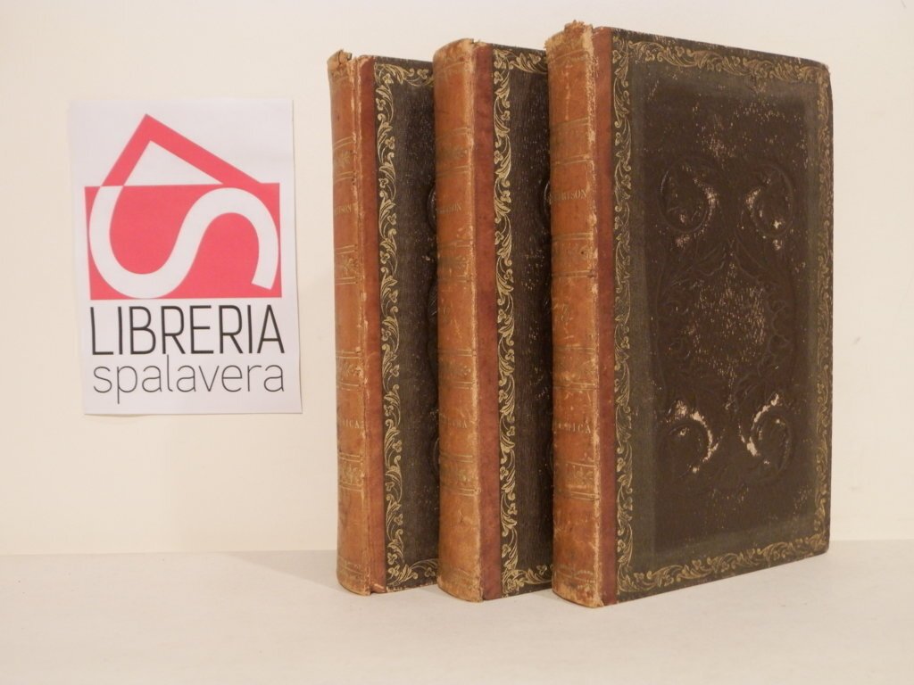 8°, cm 21, tre volumi di pp. (VII), (1), 398, (2); pp. 431, (1), con 2 carte geografiche ripiegate; pp. 372, con 2 carte ripiegate. Bella legatura coeva con piatti decorati a secco da grande arabesco in stile romantico entro cornice floreale dorata, dorso in pelle con titoli e fregi in oro. Al contro-piatto del primo volume cariglio che di merito all'alunno Verati Gualtiero dalla Direzione del Ginnario Convitto in Varese datato 20 agosto 1858. Collezione: Biblioteca Storica di Tutte le Nazioni. Insignificanti minime abrasioni all'esterno. Bell'esemplare completo delle 4 grandi carte geografiche.. *** TUTTI I NOSTRI LIBRI SONO VISIBILI PREVIO CONTATTO MAIL O TELEFONO NELLA NUOVA SEDE DI MILANO: LIBRERIA COSMOPOLIS, VIA JOMMELLI, 22. ***
