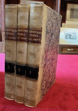 8vo (cm. 20,5), 3 Voll.; VII(1)-398 pp.; 431(1) pp.; 372 pp. Con quattro carte geografiche più volte ripiegate f.t. Legature coeve in mz. pergamena con fregi e titoli oro su doppio tassello in pelle al ds. Lievi fioriture, peraltro esemplare in ottimo stato di conservazione. Provenienza: Collezione Spina, Avezzano (timbretti ex libris).