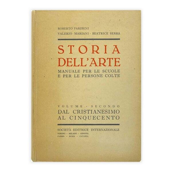Autore: Roberto Paribeni, Valerio Mariani - Beatrice Serra Titolo: Storia dell'arte Sottotitolo: Manuale per le scuole e per le persone colte Edizione: Società editrice internazionale 1951 Dimensioni: 24,5x17,5 cm Pagine: 267 Copertina: Cartonato Condizioni: Ottime come da foto Note: Volume secondo dal cristianesimo al cinquecento