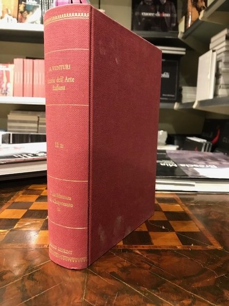 Venturi Storia dell'arte italiana. 26 tomi. Milano, Hoepli 1901 , 26 tomi in ottime condizioni. Copertina rigida. Elegante legatura in mezza pelle con angoli, dorsi con nervi e titoli impressi in oro. Brossure editoriali conservate. Con oltre 18.000 illustrazioni in b/n e 16 a colori. Opera rara e in stato di nuovo. Hoepli. Milano. 1901.