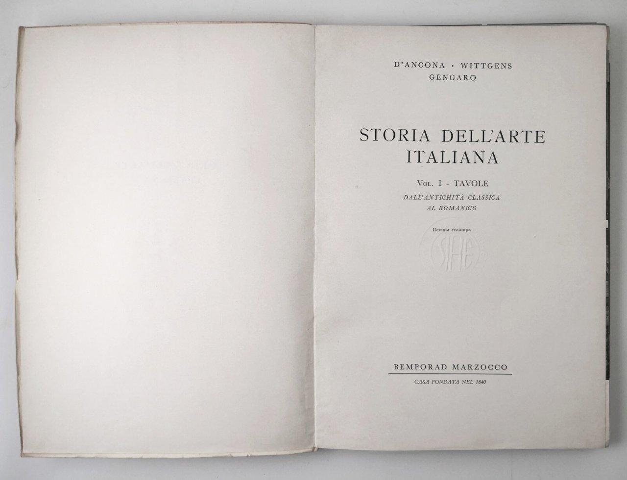 STORIA DELL'ARTE ITALIANA Volume I TAVOLE. Dall'Antichità Classica al Romanico di D'Ancona-Wittgens Gengaro.