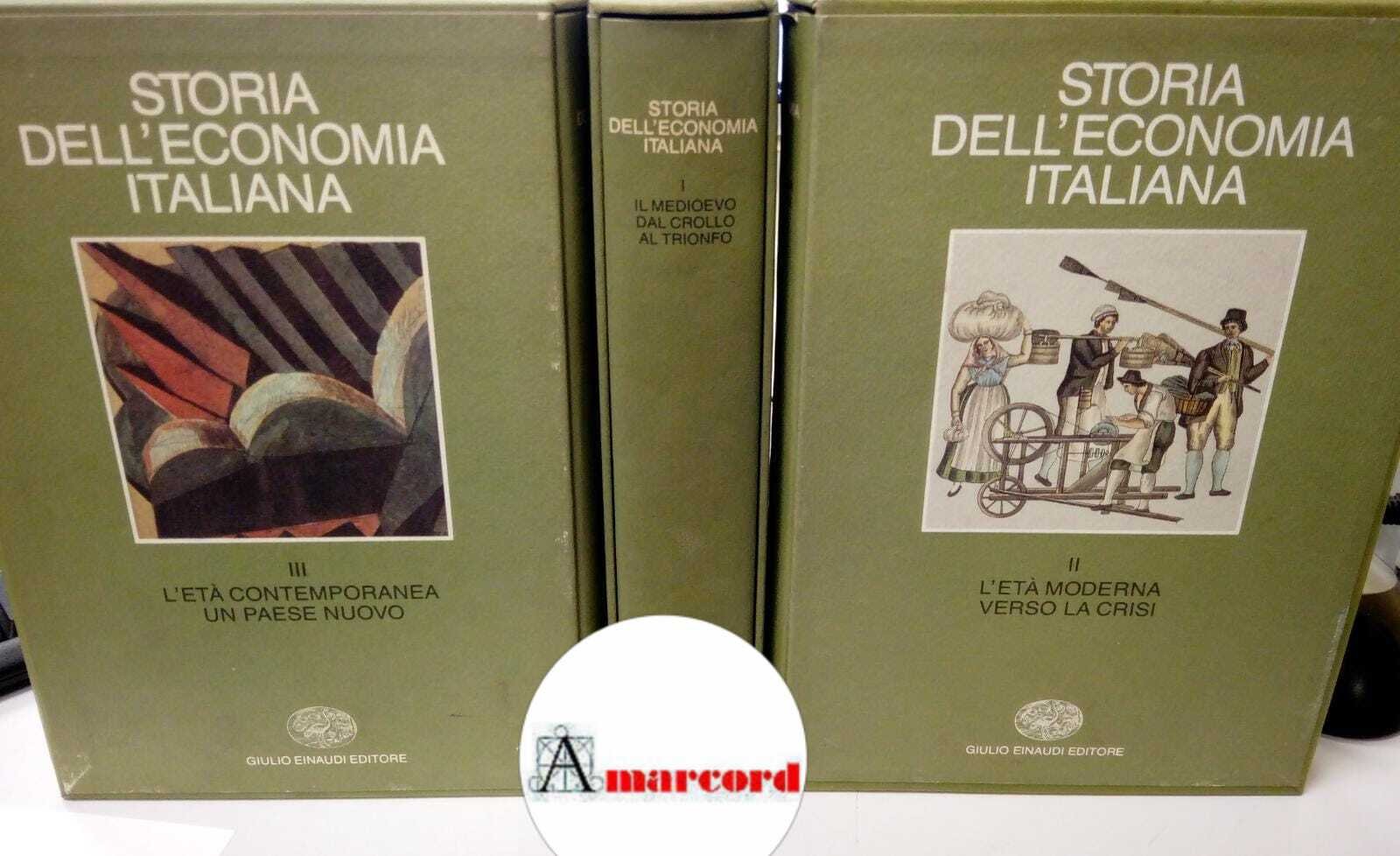 901 aa.vv. Storia dell'economia italiana (3 voll.), Einaudi, 1990.. Torino, Einaudi 1990 italiano, in ottavo Pp. Xxvi-296; Xvi-344; Xvi-375 23739