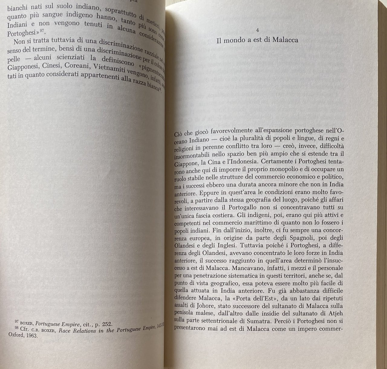 Soggetti: Storia europea moderna e contemporanea Espansionismo europeo Comparata Storiografia Saggi storici Critica Imperialismo Espansione Colonialismo Colonizzazione Conquiste Guerre Asia Antichità Medioevo Francia Inghilterra Olanda Gran Bretagna Impero britannico Commercio internazionale Economia Traffici Scambi Risorse Materie prime Spezie Mercato Spagna portogallo Potenze Marco Polo Circumnavigazione Africa Portoghesi India Est Malacca Capitalismo Compagnie mercantili delle Indie Corona portoghese Olandesi Inglesi Francesi Strutture Mercantilismo Acculturazione Strategie missionarie Missioni Cristianesimo Chiesa Cattolicesimo Evangelizzazione Gesuiti Nuove scoperte Dominio Fonti bibliografiche Bibliografia Riferimento Consultazione Opere generali Libri rari fuori catalogo Religiosa Stato moderno Antropologia storica Radici comuni Tradizioni Paesi Storie nazionali Ottocento Novecento Pensiero politico moderno Geschichte der Staatsgewalt Verfassungsgeschichte Europas Anfängen Gegenwart Affari Albuquerque Amsterdam Batavia Bengala Bombay Boxer Rivolta Rivoluzione Calcutta Calicut Ceylon Coolhaas CHAUDHURI Cina Cochin COLENBRANDER Coloniale Commerciale Compagnia Concorrenza Conquista Controllo Corona Costa Cruzados DIFFIE-WINIUS Dupleix Dutch-Asiatic Filiale Flotta Francese FURBER Giappone Giapponese Giava GLAMANN Governatore Guerra Gujarat Haag Hakluyt Society Indiani orientali Indigeni Inglese Isole LACH Lisbona Macao Madras MAGALHÃES GODINHO Malabar Manila Merci Metallo pregiato Milioni Missionari Mogul Molucche Monopolio Musulmani Navi Nawab Occidentale Ormuz Paesi Bassi Paris Pepe Spezie Seta Politica Porto Portogallo Profitto Rival Sistema Spagnoli Spedizione STAPEL Sterline Successo Surat Territorio Vasco da Gama Viaggio XVII XVIII Conflitti vita intellettuale Minoranze etniche Diritti Tolleranza Parità Nobiltà Ancien Régime Aragona Diritto comune Danimarca Decolonizzazione Democrazia Germania Influenza Unità Inghilterra Principi Costituzione Stati Società Leggi Violenza Forza Istituzioni Giustizia Imperatore Castiglia Chiesa cattolica Globalgeschichte Ecclesiastiche Re Licheni Luigi Regime Impero Repubblica Rivoluzioni Ruolo Romano finalmente Svezia Città Ungheria Amministrazione Sovranità popolare Modello Monarchia elettiva Resistenza Schiavitù Razzismo Ebrei Antisemitismo Dittatura Totalitarismo Shogun Singapore Tongking Trattato Indipendenza Vietnam Guerra Mondiale Indocina Indonesia Kuala Lumpur Commonwealth Daimyo Arabi Islam Malaya Manciuria Meiji Medio Oriente Studi Donne Emancipazione Dominazione Cartine geografiche Mappe Geografia Nuovo Mondo Scoperte geografiche Papato Ordine di Cristo Crociate Castiglia Angioini Rinascimento Filippine Borneo Formosa Avventurieri Critica Storiografia Oro Metalli preziosi Tratta Apartheid Sfruttamento Manodopera Importazioni Amerigo Vespucci Cristoforo Colombo Bruges Belgio Paesi Bassi Anversa Capitalismo Capitale Navigazione Russia Venezia Amalfi Pisa Repubbliche Marinare Tè Caffè teorie storiografiche Wallerstein Sistema Lewis Bernstein Namier North-Thomas Marshall Fisher Azionisti Bewindhebber Vorkompanien Cartografia Pacificazione Ventura Assicurazioni Sumatra Modern Contemporary European history Expansionism Comparative Historiography Historical essays Criticism Imperialism Colonialism Colonization Conquests Wars Antiquity Middle Ages France England Holland Great Britain British Empire International trade Economy Traffic Exchanges Resources Raw materials Spices Market Spain Portugal Powers Circumnavigation Portuguese East Capitalism East India Trading Companies Portuguese Crown Dutch English French Structures Mercantilism Acculturation Missionary strategies Missions Christianity Church Catholicism Evangelization Jesuits New discoveries Dominion Bibliographic sources Bibliography Reference Consultation General works Rare books out of print Religious Modern state Historical anthropology Common roots Traditions Countries National histories Nineteenth Twentieth century Modern political thought Business Bengal Revolt Revolution Capital China Colonial Commercial Company Competition Conquest Control Crown Coast Branch Fleet French Japanese Java Governor War East Indians Natives English Islands Lisbon Goods Precious metal Millions Missionaries Moluccas Monopoly Muslims Ships Western Netherlands Pepper Spices Silk Politics Port Portugal Profit System Spanish Shipping Pounds Success Territory Travel XVII XVIII Conflicts intellectual life Ethnic minorities Rights Tolerance Equality Nobility Aragon Common law Denmark Decolonization Democracy Germany Influence Unity England Principles Constitution States Society Laws Violence Force Institutions Justice Emperor Castile Catholic Church Globalgeschichte Ecclesiastical King Lichens Louis Empire Republic Revolutions Role Roman finally Sweden City Hungary Administration Popular sovereignty Model Elective monarchy Resistance Slavery Racism Jews Anti-Semitism Dictatorship Totalitarianism Shogun Singapore Treaty Independence World War Indochina Arabs Manchuria Middle East Studies Women Emancipation Domination Geographical maps Maps Geography New World Geographical discoveries Papacy Order of Christ Crusades Castile Angevins Renaissance Philippines Adventurers Criticism Historiography Gold Precious metals Trafficking Exploitation Labor Imports Belgium Netherlands Antwerp Capitalism Navigation Venice Maritime Republics Tea Coffee historiographical theories Shareholders System Cartography Pacification Insurance Collezionismo Collectibles