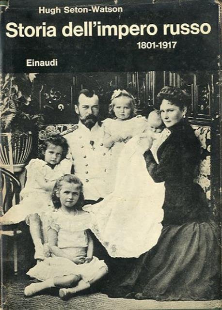 XX, 731 p. ; 21 x 15 cm. Biblioteca di cultura storica, 116. Hugh Seton-Watson affronta in questa vasta e originale sintesi quel periodo della storia della Russia zarista che va dall'avvento di Alessandro I (all'inizio del secolo XIX) alla vigila della rivoluzione del febbraio 1917. Titolo originale dell'opera: «The Russian Empire 1801-1917». Traduzione di Franco Salvatorelli. Legatura editoriale, coperta in cartone rigido di tela verde, titolo impresso in bianco al dorso, muto il piatto. Sovraccoperta illustrata (b/n) in carta. Qualche segno del tempo ai profili della sovraccoperta e al taglio (ingiallimento), per il resto esemplare integro. Codice libreria 6182.