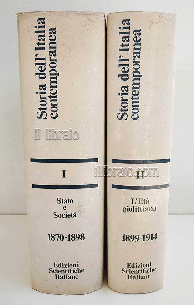 solo i primi 2 voll.; in 8°; pp. 424 + 272 + tavv. (ill. bn.); leg. con sovracop.; vol 1: Stato e società (1870-1898), vol 2: L'età giolittiana (1899-1914) (in vendita anche separatamente)