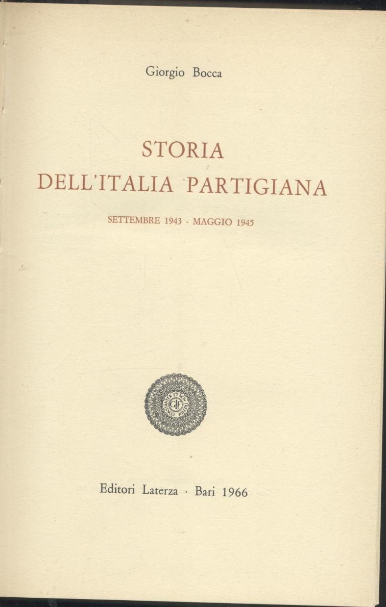 STORIA DELL'ITALIA PARTIGIANA settembre 43 maggio 45 di Giorgio Bocca 1966 libro
