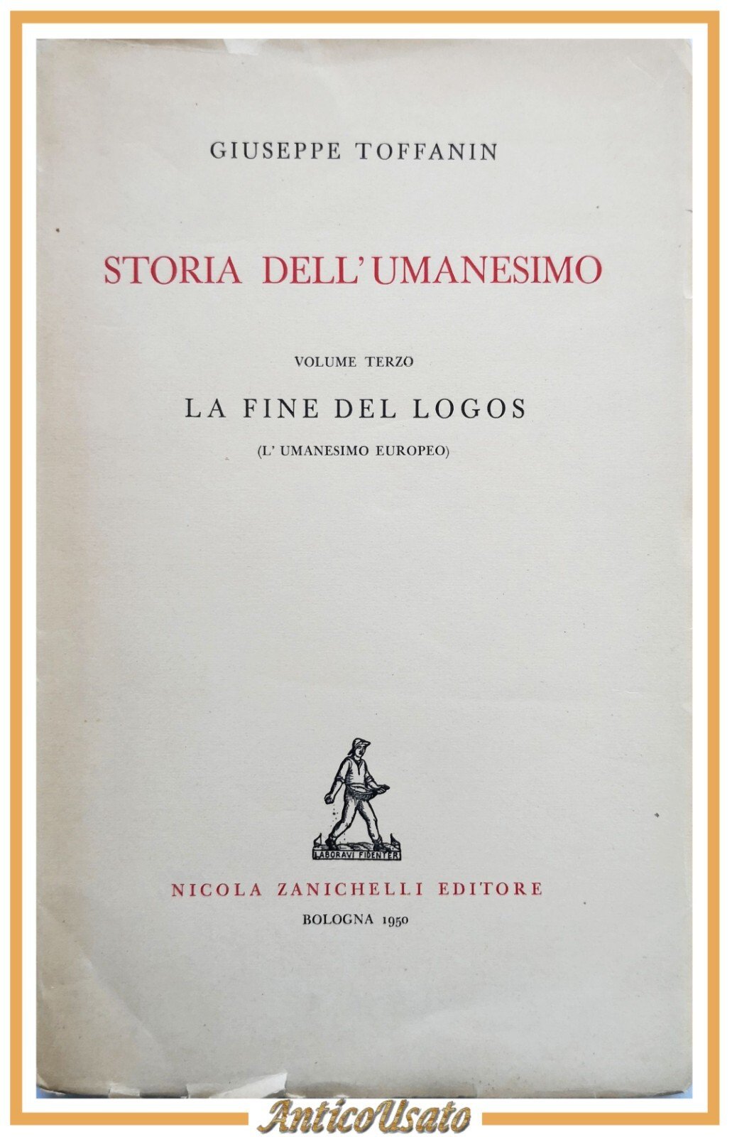 STORIA DELL'UMANESIMO volume 3 di Giuseppe Toffanin 1950 Zanichelli libro Logos