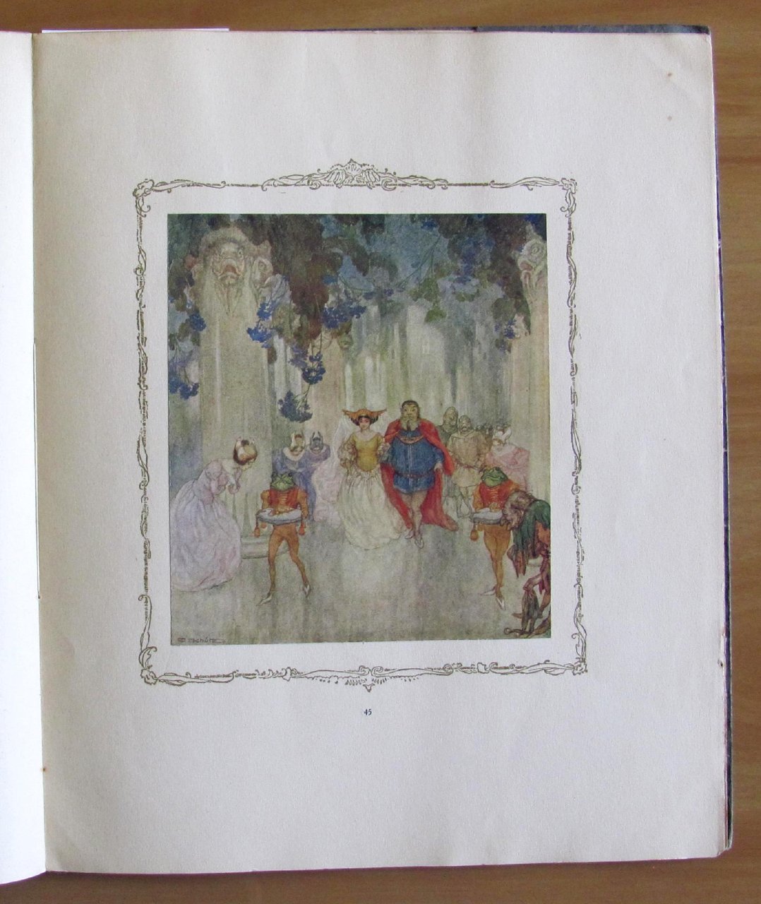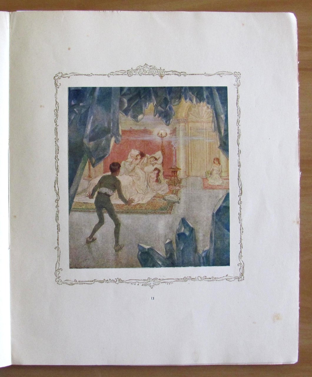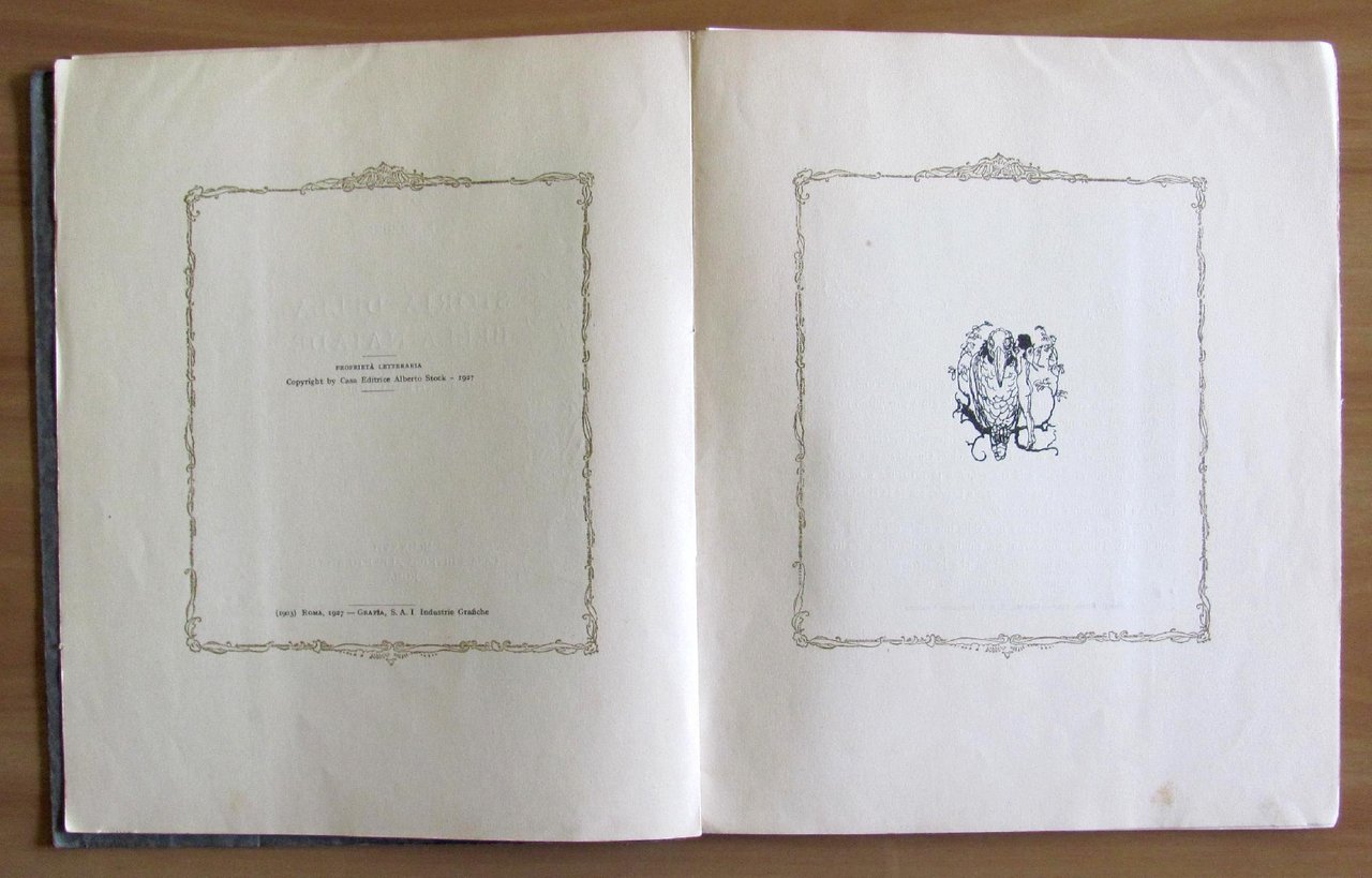 Fregi in cornice in oro a tutte le pagine, testatine e finalini in nero n.t. e 9 belle tavole a colori applicate f.t. di Schutz. Casa Editrice Alberto Stock - Roma, I edizione 1927. Brossura editoriale con lievissime tracce d'uso alle cerniere e piccola imperfezione in basso al dorso. Peraltro Come Nuovo. 26x31; pp.54. Raro, Ottimo stato. , Molto buono (Very Good)