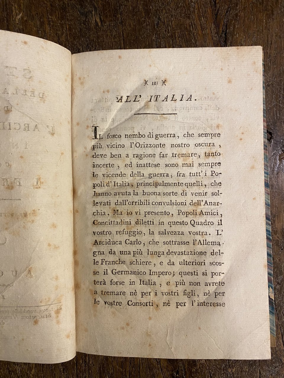 Vol. unico, in -16, pp. 147, leg. m.p. con filetti e titolo oro al dorso, piatti marmorizzati (legatura ottocentesca non coeva, ex libris nella controguardia e timbro di vecchia biblioteca estinta), pagine morbide con fioriture.
